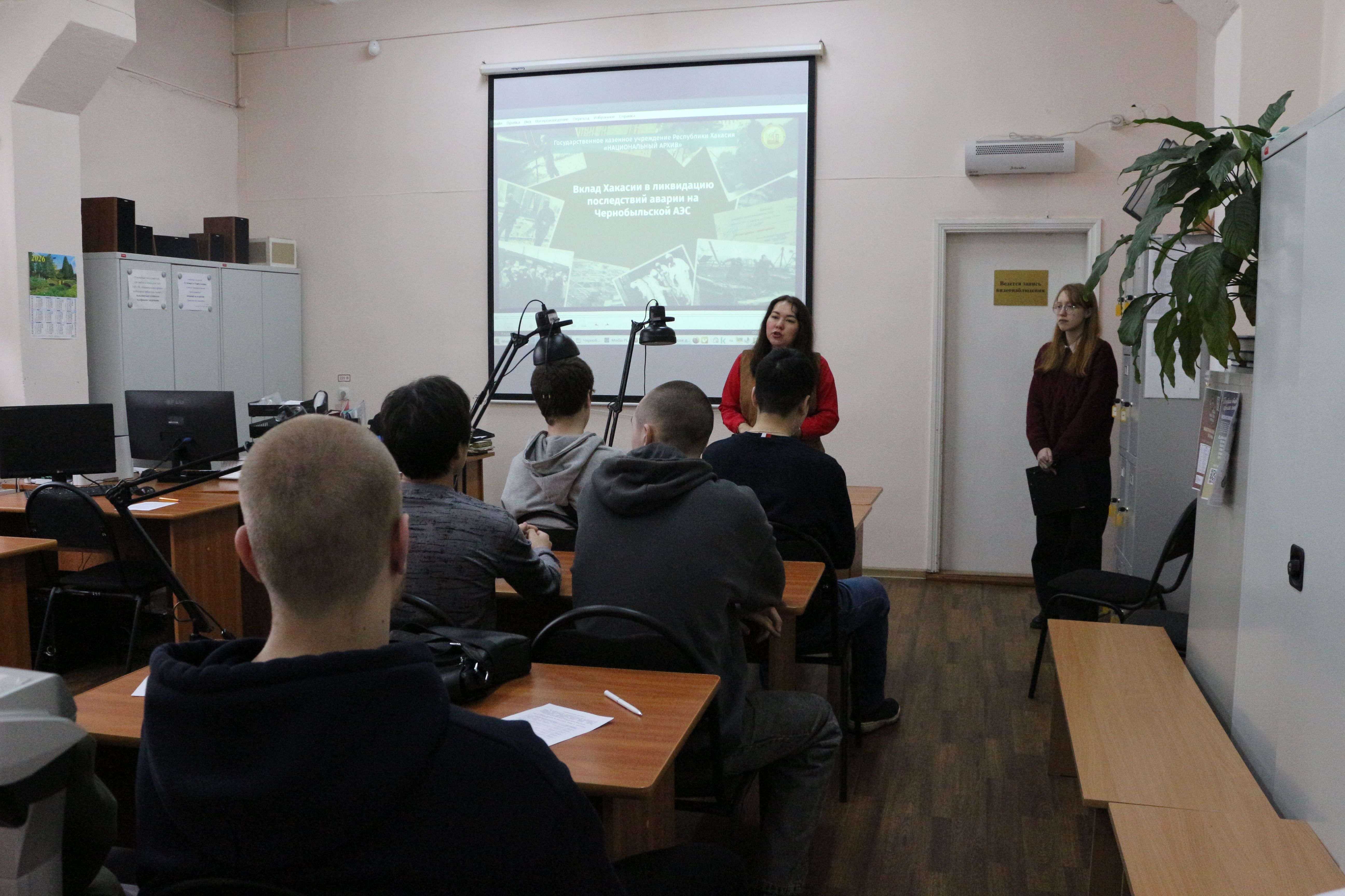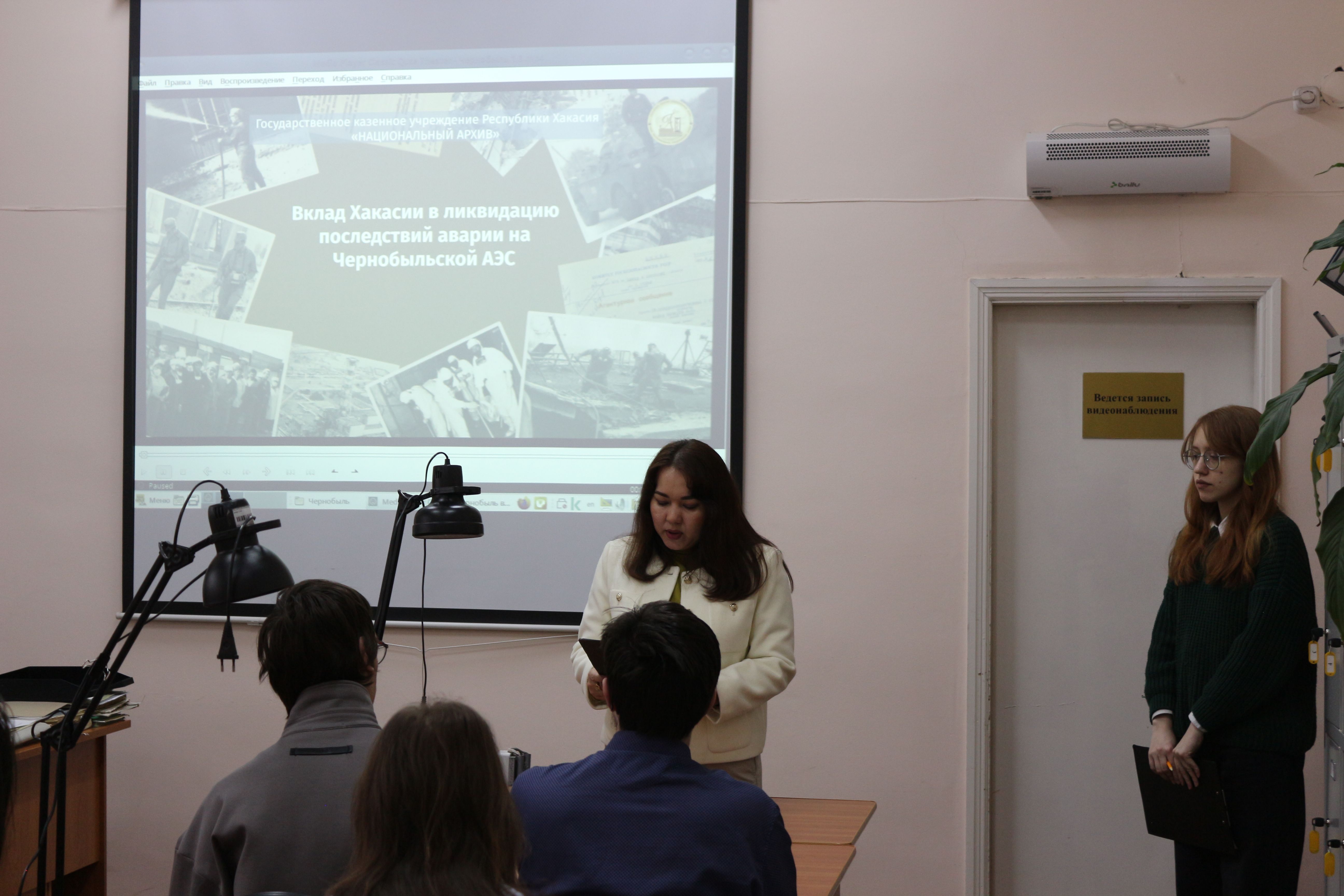 В преддверии 40-й годовщины аварии на Чернобыльской атомной электростанции специалисты архива подготовили для студентов насыщенную программу. Ключевым событием стал показ документального видеоролика «Вклад Хакасии в ликвидацию последствий аварии на Чернобыльской АЭС». Фильм рассказал о самоотверженной работе ликвидаторов из Хакасии, которые, жертвуя здоровьем, спасали мир от невидимой радиационной угрозы. Студенты узнали о тяжелых условиях труда в зоне отчуждения, о героизме простых людей, вставших живым щитом на пути распространения радиации.
